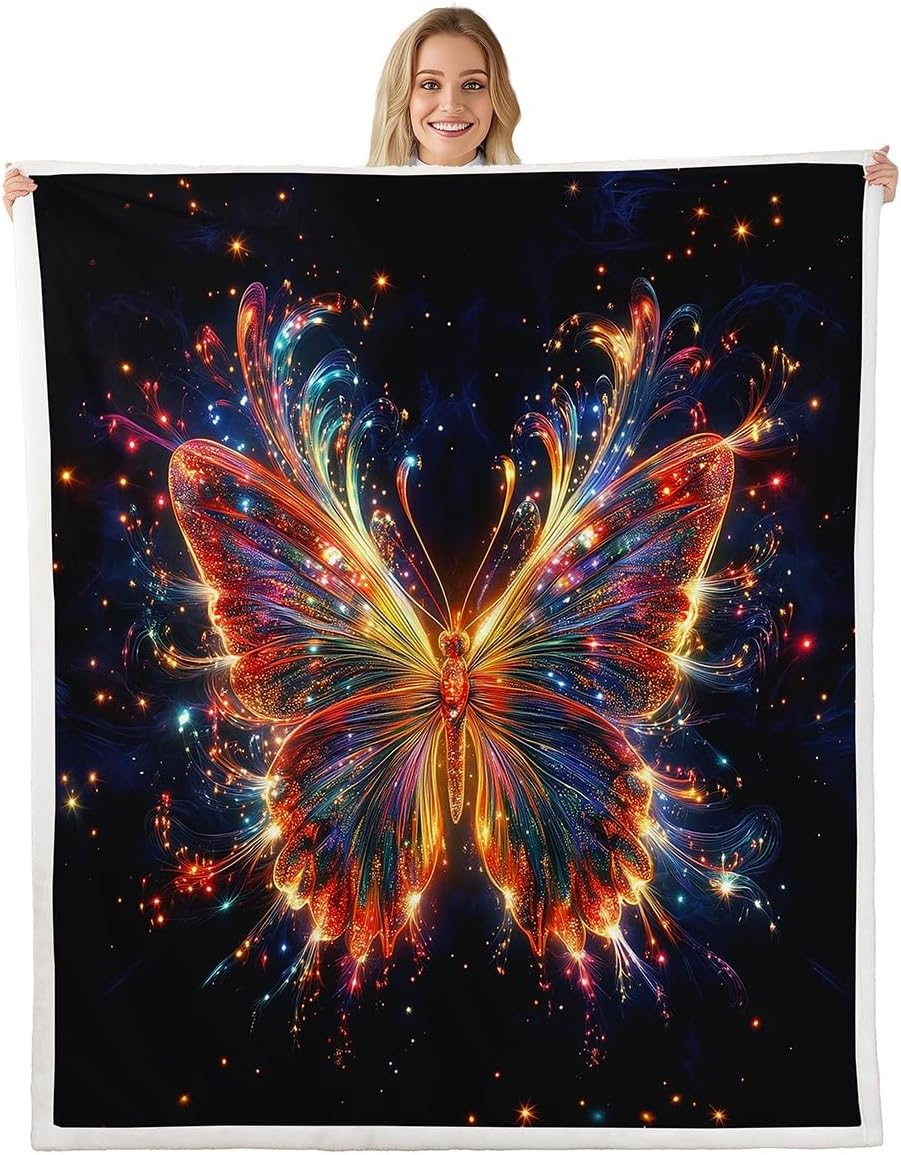 3D Butterfly Kids Flannel Blanket,Watercolor Neon Light Dots Print Fuzzy Blanket for Children,Wild Animal Pattern Galaxy Black Polyester Throw Blanket for Couch, Twin Size (60 x 80 Inch)