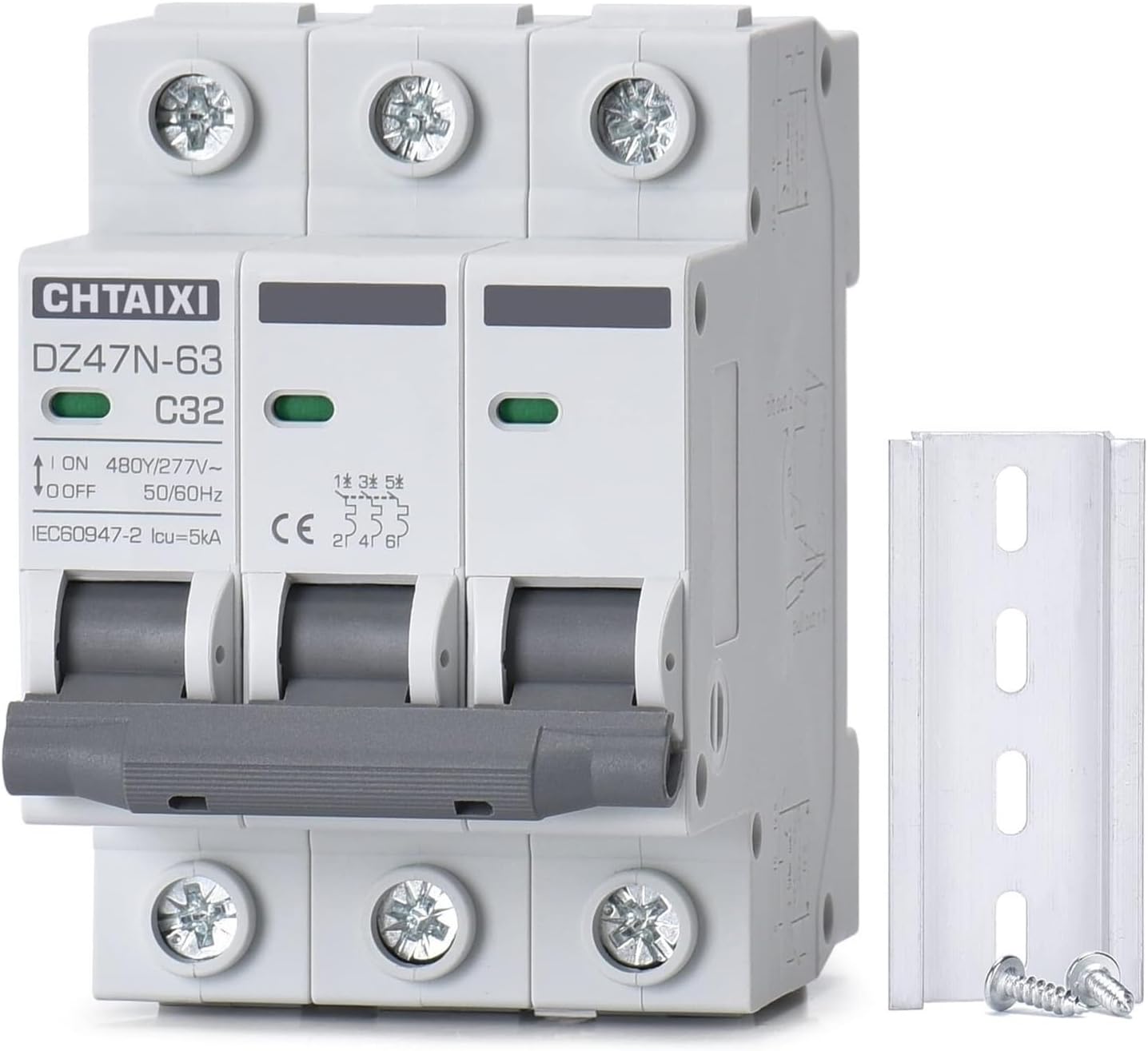 Miniature Circuit BreakersFUNCTIONS: Used to protect 240V AC circuit from overload and short circuit damage, and can also be used for control and isolation.CURVE C: Magnetic trip range 5-10 times rated current.QUALITY: Silver alloy contacts, flame retardant material shell, color indicator.APPLICATION: Can be used in 3 phase circuit, or other 50/60Hz AC systems.INSTALLATION: 35mm DIN rail mount, Screw clamp wires (Soft silicone wire needs to crimp fixed the wire end with copper crimp first).