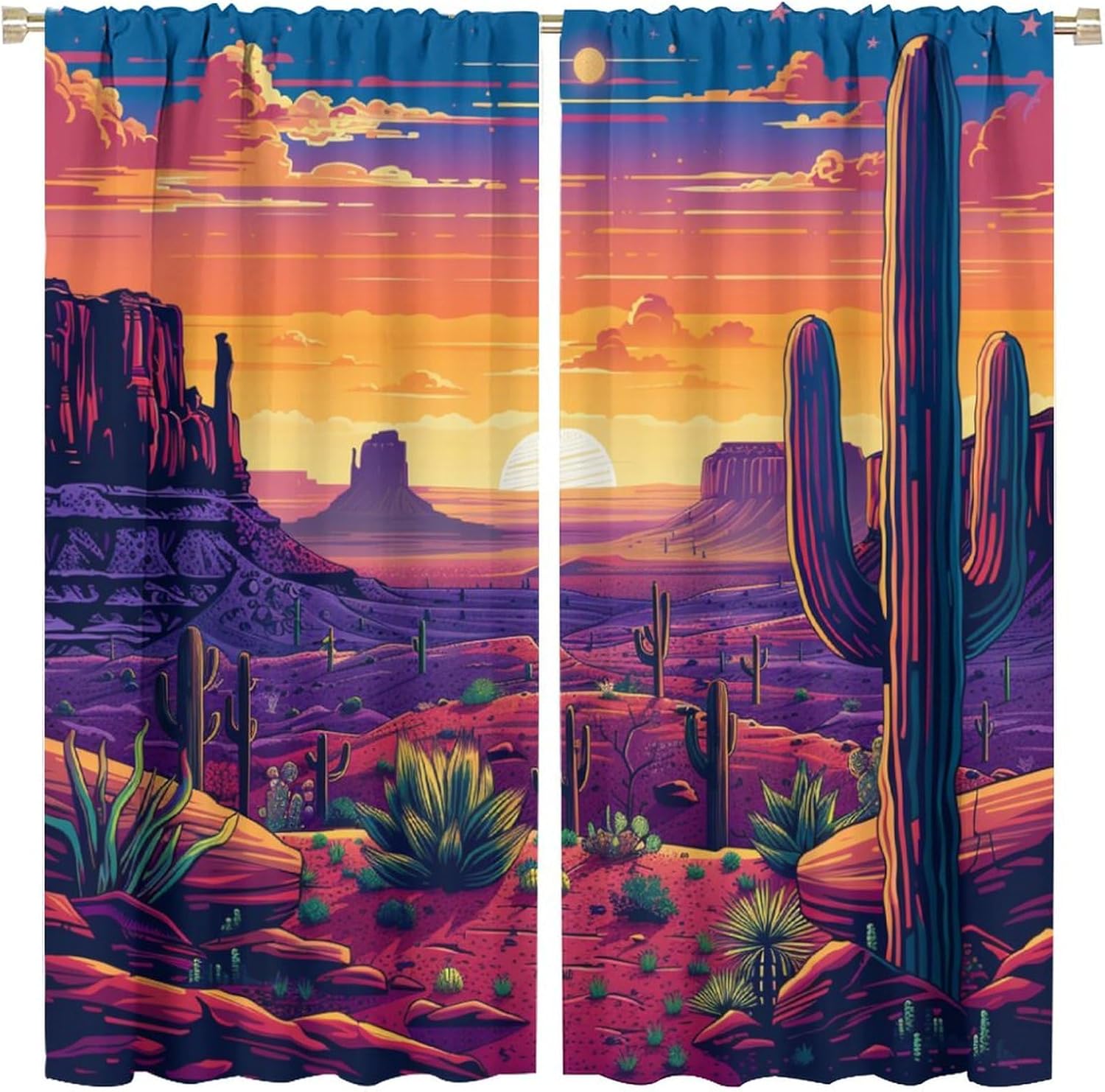 Welcome to our store. We are a company that has been focusing on making home textile products for many years and has always had a good reputation in the home furnishing category.High Quality Workmanship: Our products undergo strict quality control throughout the entire production process. Uniformly made of high quality and healthy materials. They have a silky feel and beautiful drape.Multiple Functions: Functional and stylish, these premium printed window trims offer high performance in room darkening, noise reduction, energy saving and increased privacy. They also help protect against cold drafts in the winter and prevent cold air conditioners from escaping in the summer.Benefits With The Right Balance: Advanced printing and art equipment ensure crisp patterns and long-lasting using. Drapey shape made from wrinkle-free material. Contribute the charm of watercolor to these curtain panels, providing a rustic and beautiful feel.Curtain Benefits: Our curtains are great for late sleepers, shift workers, seniors, babies, students, computer operators and more. And easy to install, convenient and time-saving.