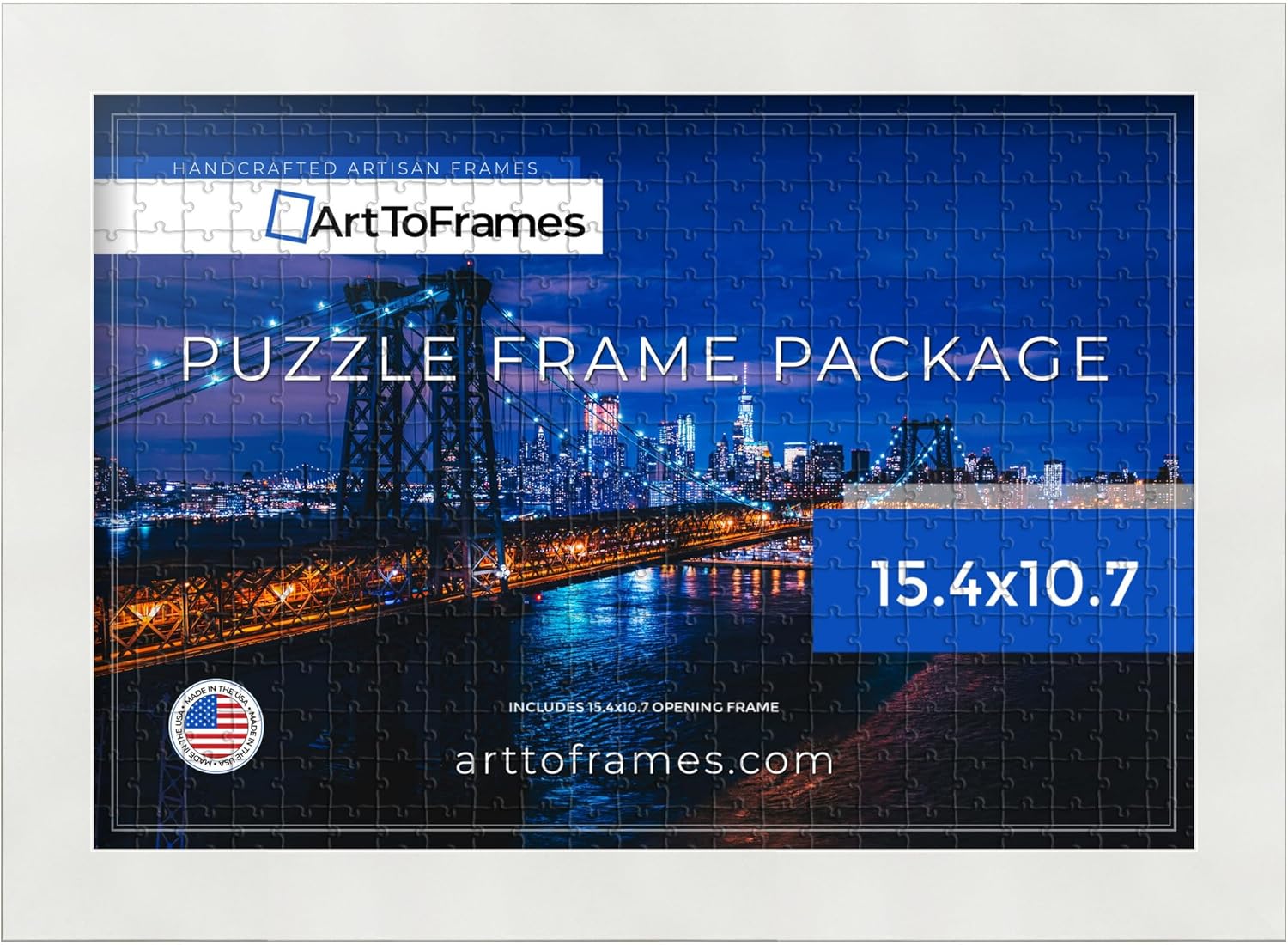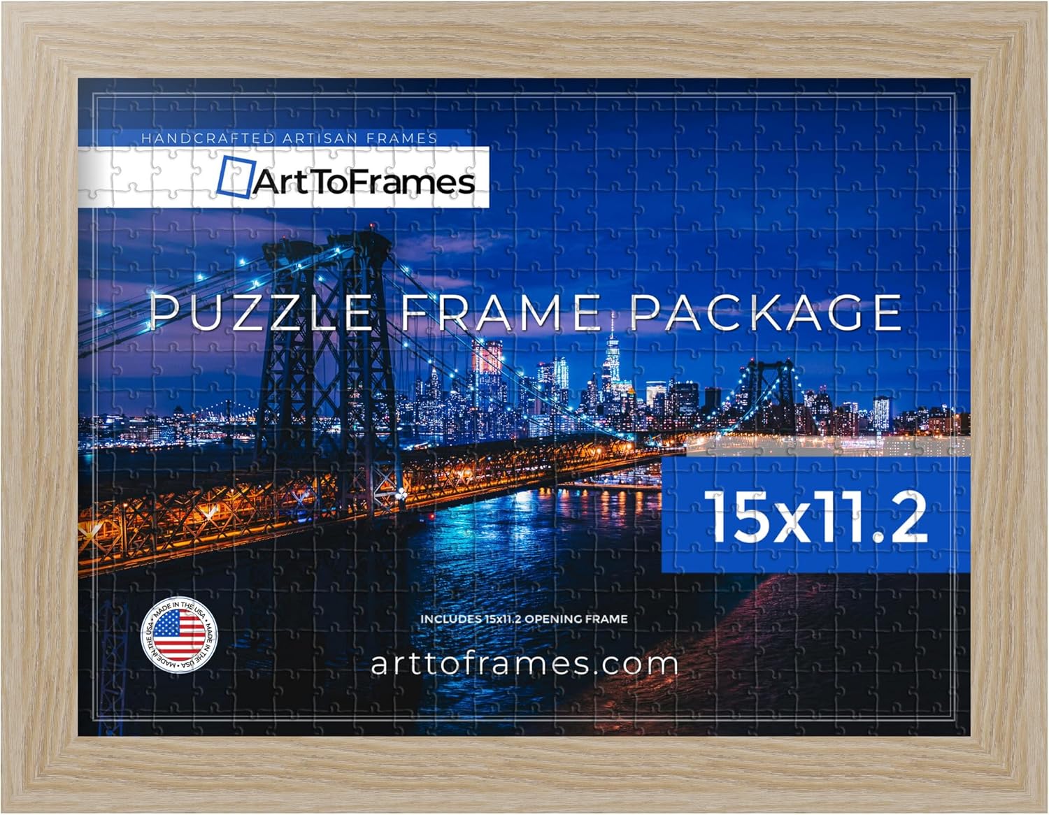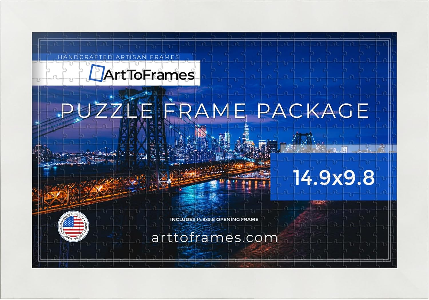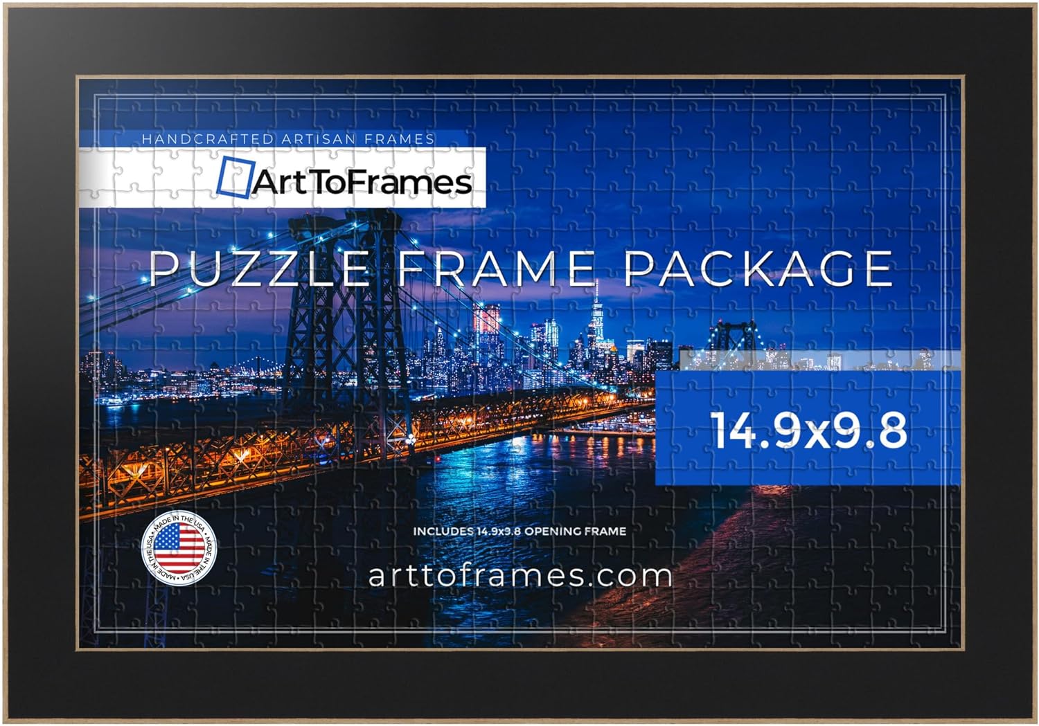 Introducing a pristine image puzzle frame in the dimensions of 15x11.2, designed to accommodate prints of 15'' x 11.2'' or 11.2'' x 15'' seamlessly. Crafted from high-quality MDF, this puzzle frame boasts a width of 1.25'' and a depth of 0.7500''. The 0.4375'' deep rabbet ensures a perfect fit for your artwork. Meticulously manufactured to meet the highest industry standards, this frame includes Regular Glass. Its unique size sets it apart from typical frame selections, offering versatility for displaying your cherished puzzles, and more. The frame, in the striking Black, effortlessly complements both black-and-white and color pictures or paintings. Suitable for any setting, it adds a touch of elegance without overpowering the surroundings. If uncertain about this frame, use the search function to discover our extensive collection of wood, MDF, and premade picture frames under the ArtToFrames brand.~Product SKU # - - PuzzleFRBW26079-15x11.2~