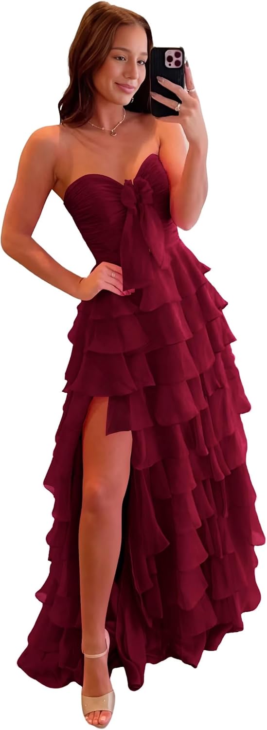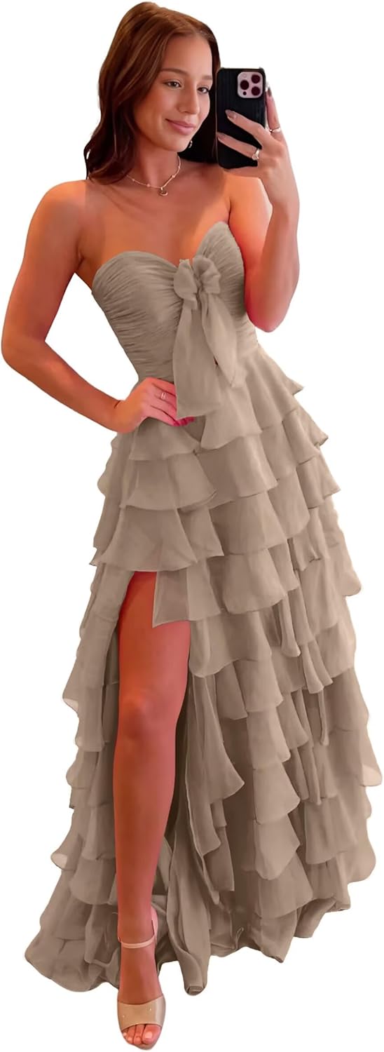 | Embellishment Feature | A Line, Bow, Chiffon, Split, Strapless |