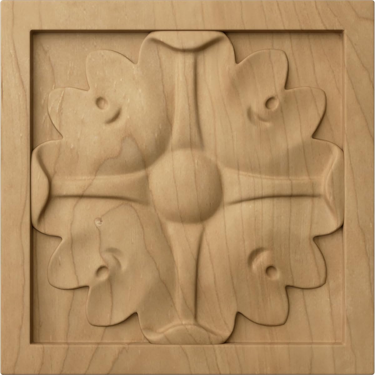 ROS03X03X00EDAL Features: -Product Type:Rosette Applique -Molding Use:Accents -Material:Wood. Dimensions: -Overall Height - Top to Bottom:3 -Overall Product Weight:0.25 -Overall Width - Side to Side:3 -Projection From Wall:16