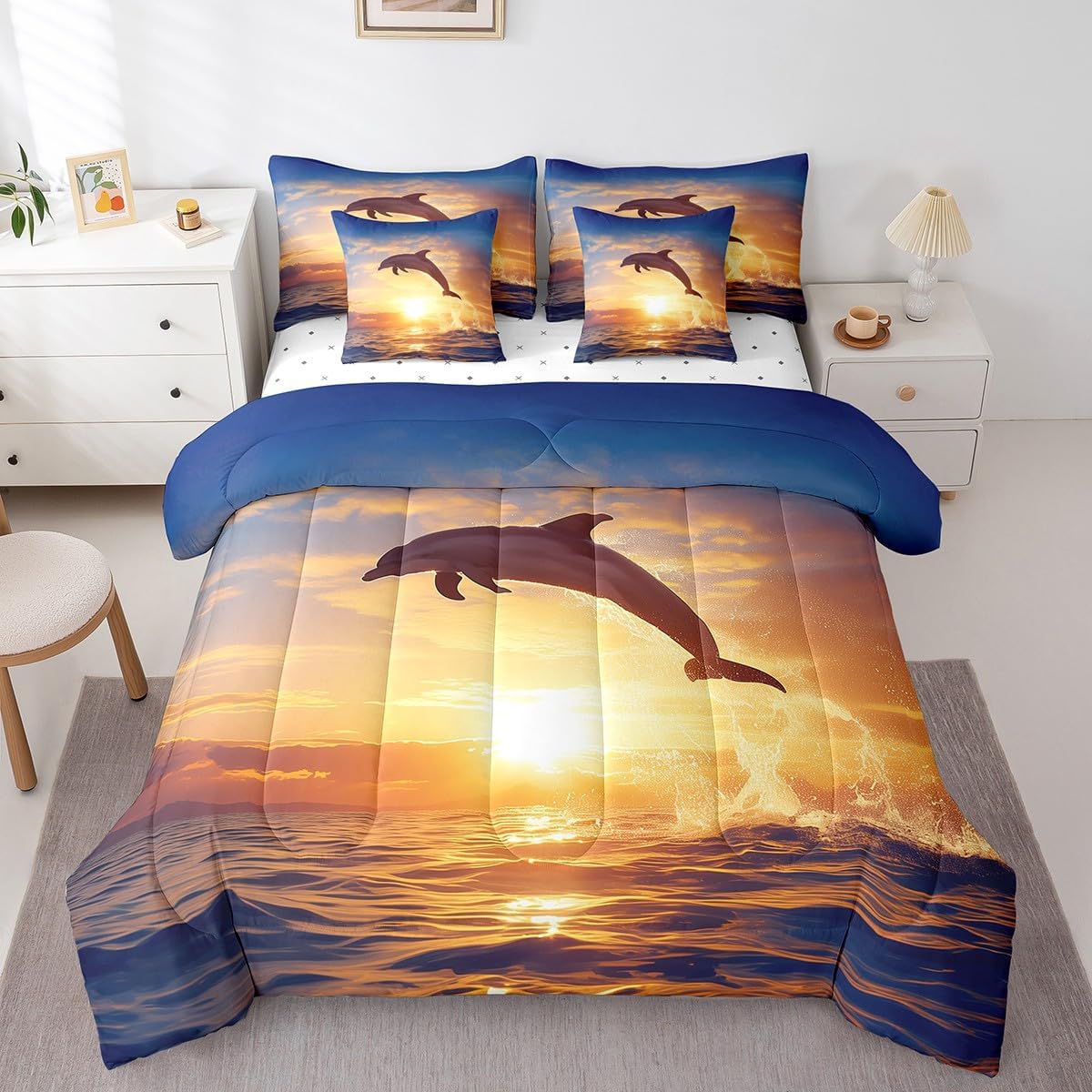 Colorful Makeover to Your Life Various size and color options, there are always decor room. Size Options: 7 Pieces Twin Size,1 Down Comforter 68"x 90", 1 Fitted Sheet 39"x75"x16", 1 Flat Sheet 96"x66", 2 Pillow Cases 30" x 20",2 Throw Pillow Covers,Covers Only. 18"x 18". 7 Pieces Full Size ,1 Down Comforter 79"x 90", 1 Fitted Sheet 54"x75"x16", 1 Flat Sheet 96"x81", 2 Pillow Cases 30" x 20",2 Throw Pillow Covers,Covers Only. 18"x 18". 7 Pieces Queen Size,1 Down Comforter 90"x 90", 1 Fitted Sheet 60"x80"x16", 1 Flat Sheet 102"x90", 2 Pillow Cases 30" x 20",2 Throw Pillow Covers,Covers Only. 18"x 18". 7 Pieces King Size,1 Down Comforter 104"x 90", 1 Fitted Sheet 78"x80"x16", 1 Flat Sheet 106"x90", 2 Pillow Cases 30" x 20",2 Throw Pillow Covers,Covers Only. 18"x 18". Decoration: For your mom, dad, sister, brother, grandma, wife, husband, and all other beloved with many surprising designs. You can find a design for everybody and every interest in our collection. Your Home,You Decide Different types of bedding sets could bring rooms in different styles. Also, rooms in different styles needs different types of bedding sets