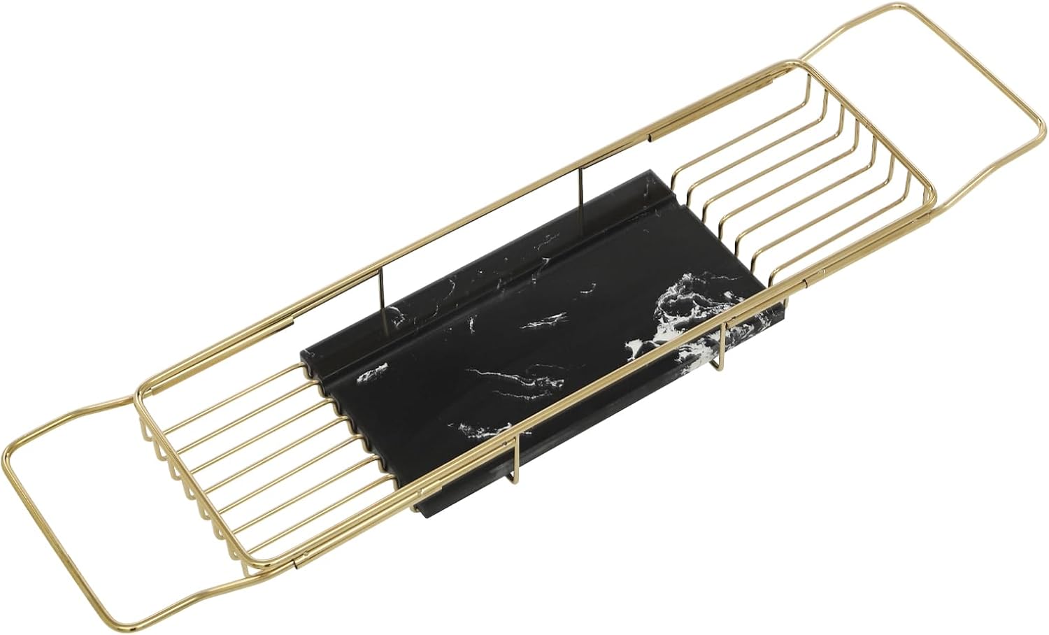 SpecificationColor: Gold+BlackMaterial: 201 Stainless Steel, MarbleProcess: Electroplating, Welding, Gold PlatingStyle: ModernShape: RectangularAssembly Required: YesMounting Type: Bathtub Mount/ Kitchen Sink MountMarble Board Groove Depth: 10mm/0.39 Expandable Range: 68-90cm/26.77-35.43 inProduct Size without Expandable: 51*17*6cm/20.08*6.69*2.36 inMarble Board Length: 29cm/11.42 inPackage Size: 53*19.5*8.9 cm/20.87*7.68*3.5 inProduct Load Capacity: 20kg/ 44.09 lbsGross Weight: 3.5 kg/7.72 lbsNet Weight: 3.32 kg/7.32 lbsPackage Included1* Expandable Bathtub TrayNotes1.Please note that this product does not include the other items shown in the display image.2.Please use within the product's load-bearing range.3.Please allow the slight color difference caused by the shooting light and 1-3cm error due to manual measurement, and make sure you do not mind before ordering.