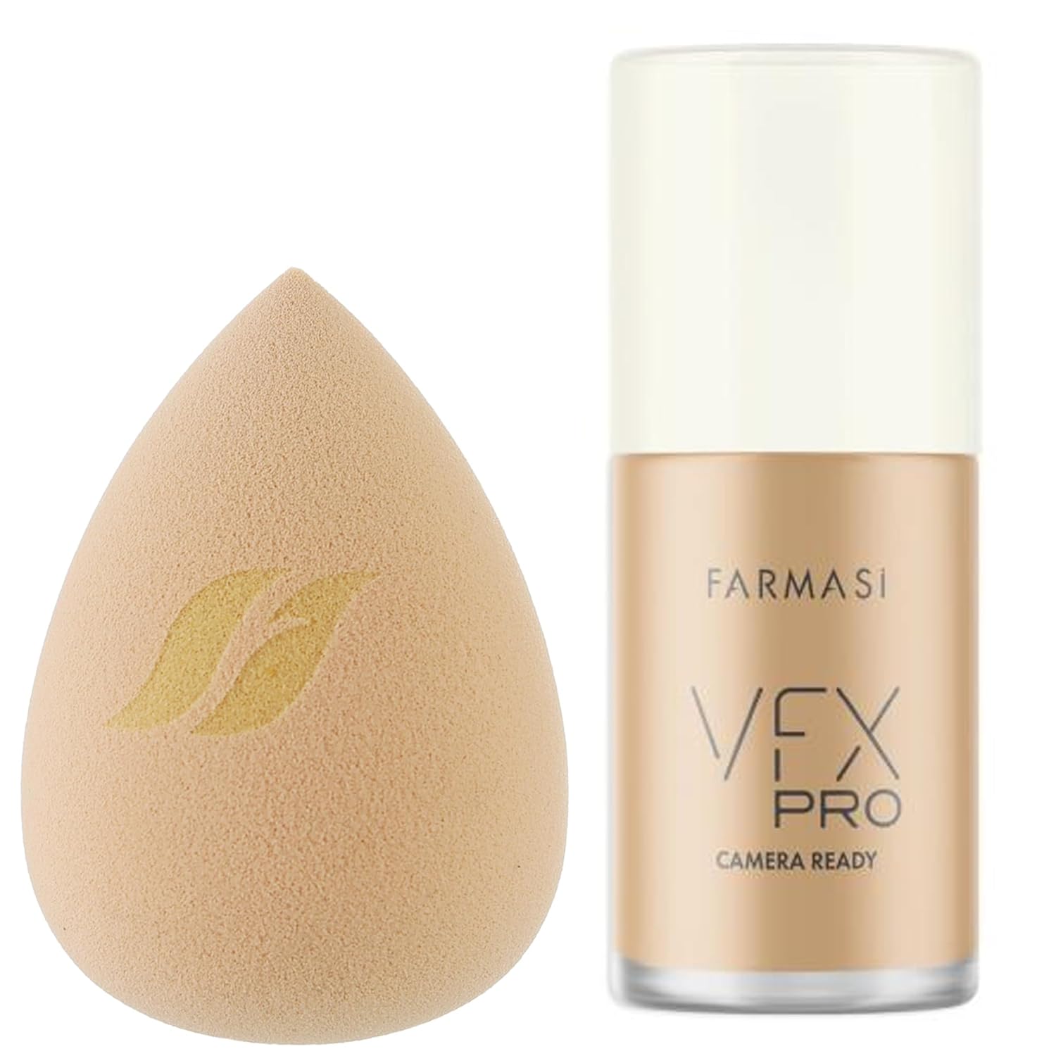 The Farmasi VFX Pro Foundation Camera Ready provides full coverage with a smooth, matte finish. This 30ml/1.01flOz foundation is enriched with sea water for hydration and color correction. It minimizes pores and provides a long-lasting, flawless look. The set includes a makeup sponge for easy and even application, ensuring a perfect finish. Suitable for all skin types, this foundation offers comprehensive coverage and care. Usage Recommendation: Shake well before use. Apply the foundation with the makeup sponge, blending evenly over the face. For external use only.