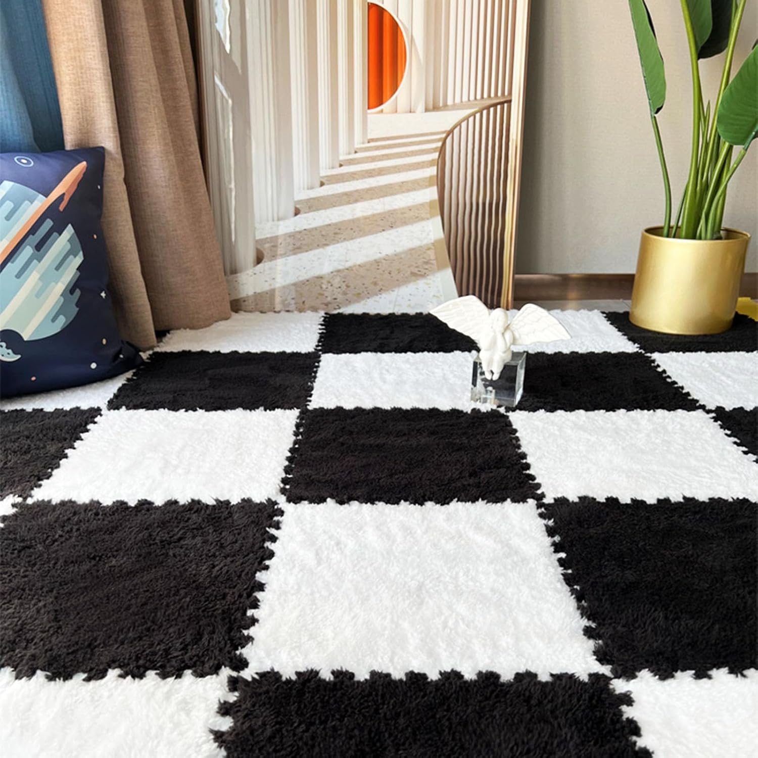Our Interlocking Carpet Tiles are designed to elevate your home decor while providing a safe and comfortable environment for leisure and relaxation. Crafted from soft Shu velvet and durable ethylene vinyl acetate (EVA), these plush puzzle foam mats showcase an array of dreamy colors, creating a sensory experience that brightens any space. Each tile measures 11.8x11.8 inches and is available in two thickness options, allowing you to customize your flooring solution to suit your needs. Perfect for playrooms, living areas, or home gyms, these mats not only enhance the aesthetic of your space but also offer essential floor protection. Installation is effortless—simply interlock the tiles for a seamless look. Remember to gently tap the mats together before installation to remove any surface lint. For maintenance, local stains can be easily wiped away with a damp cloth, and for everyday cleaning, a mild soap and lint brush work wonders. To prolong the life of your mats, air dry immediately after cleaning; we advise against machine washing or vacuum cleaning. If you have a unique vision, we welcome custom colors, textures, and sizes to meet your specific requirements. Please reach out to us for more information. Please note: 1. Allow slight size variations due to manual measurements. 2. Color differences between your screen and the actual product may occur, which is normal. 3. If you have pets, ensure they do not scratch or chew the mats to maintain their quality. Transform your space with our versatile Interlocking Carpet Tiles—where comfort meets style.