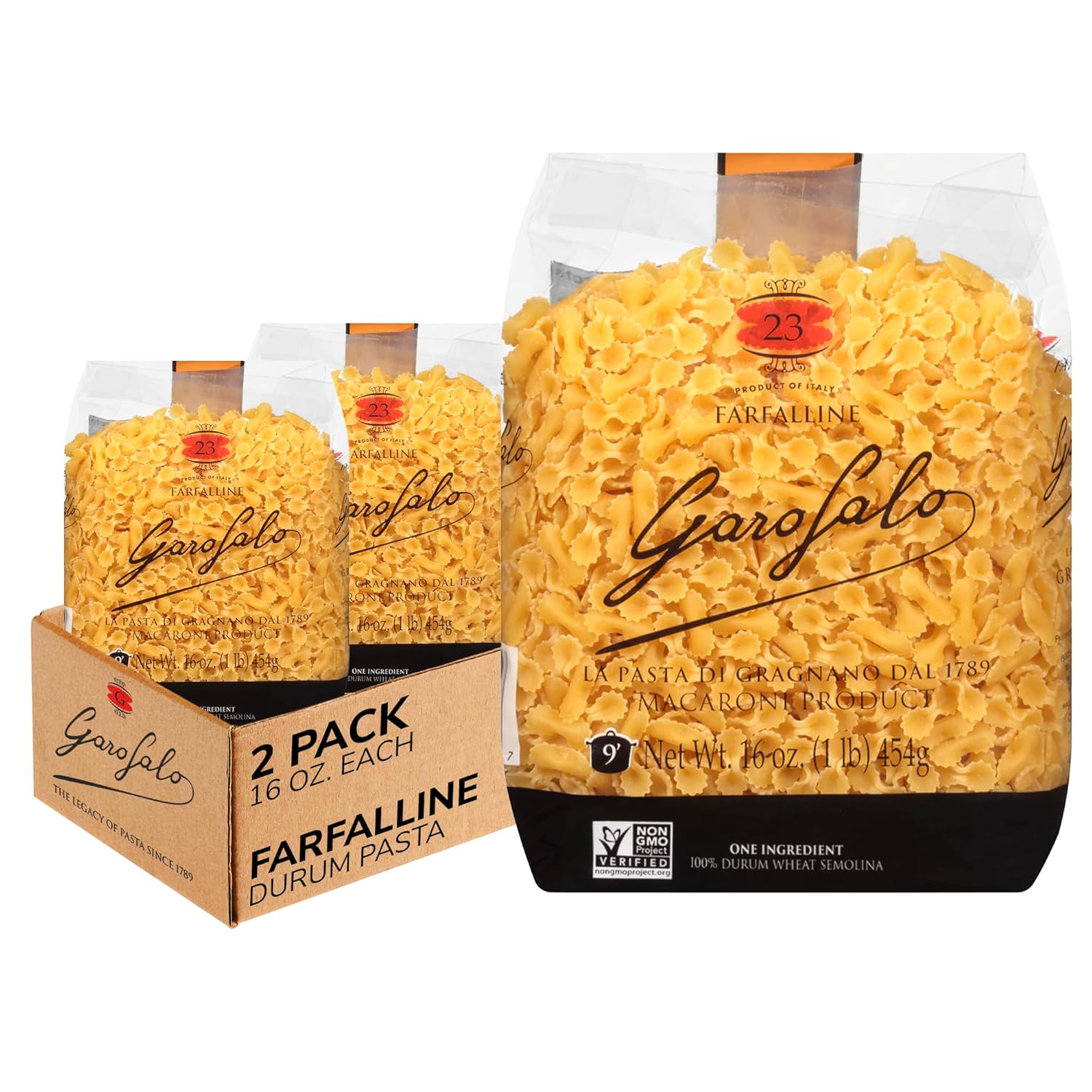 MINI BOW-TIES, BIG CHARM: Farfalline brings playful elegance to soups, delicate sauces and more. Our slow dried, bronze drawn pasta achieves a unique flavor, guaranteed al dente texture, and an extraordinary taste!
