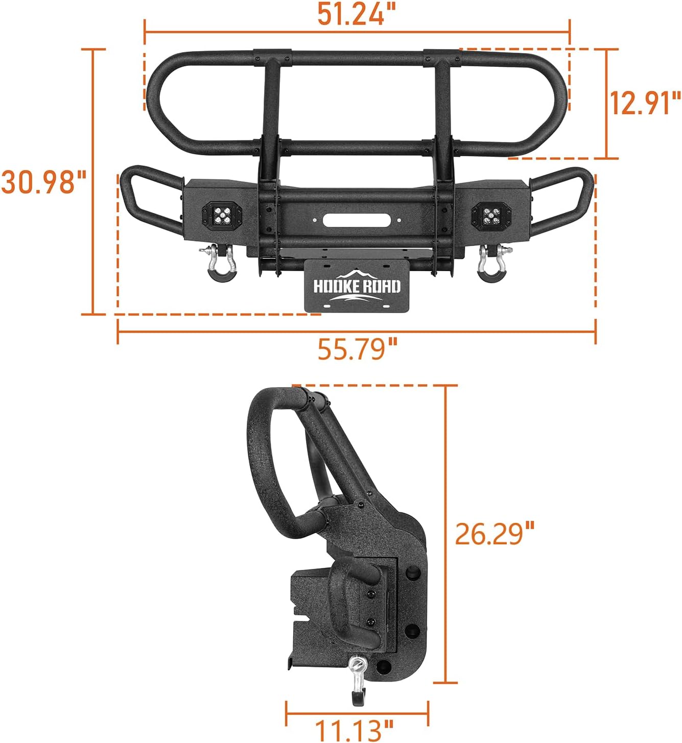 | Included Components | Front Bumper Assembly, Installation Instruction, License Plate Mount, Mounting Hardware Kit, Winch Plate, 2× LED Spotlights, 2× D-Rings |