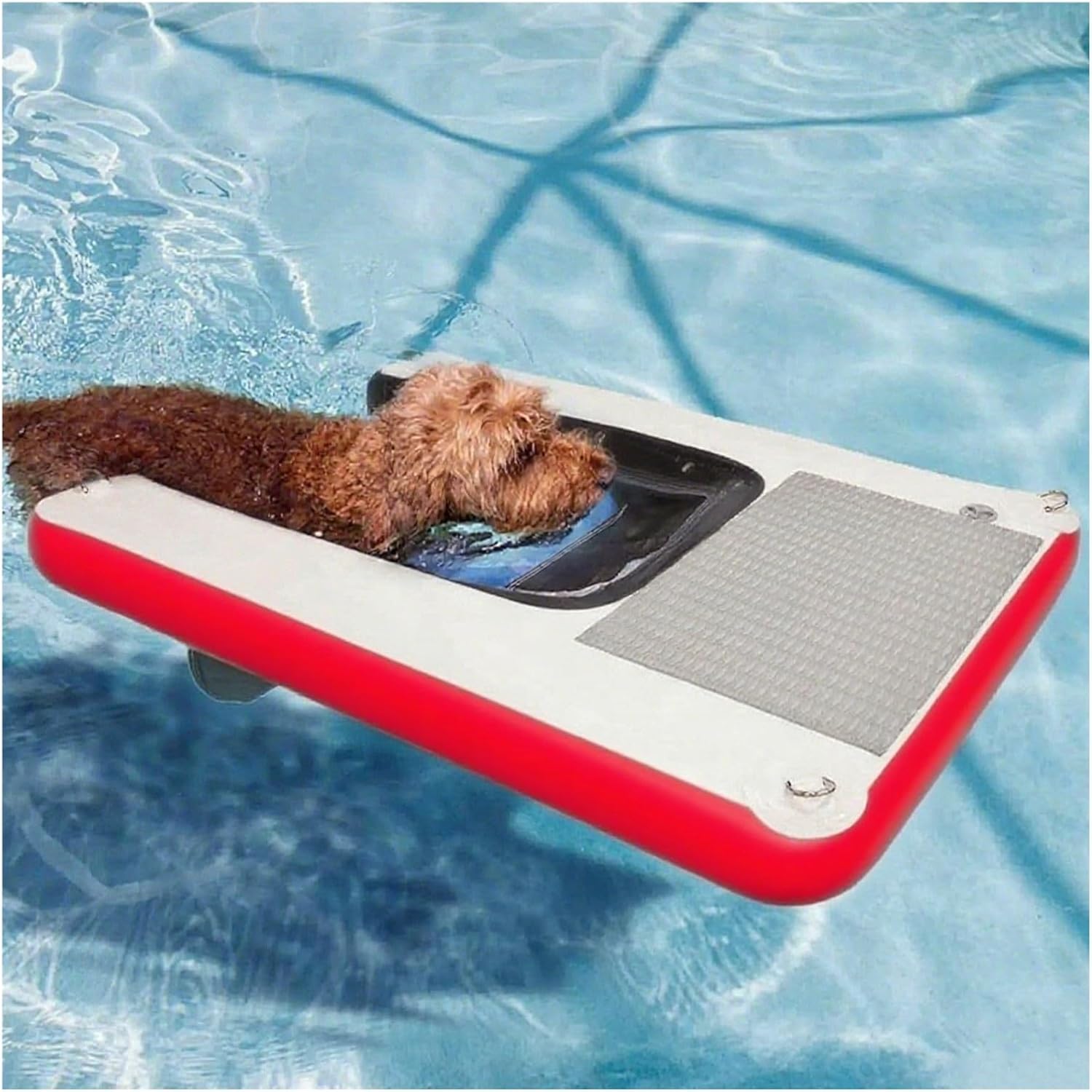 Still worried about your dog's difficulty in getting to shore after playing in the water in the summerWith MZZKFC inflatable dog ramp, these are not a matterThe love you give to your dog is hidden in these small detailsWhether you are traveling or going to a friend's pool party, easy to carry, happy to goEvery time your dog plays in the water will become a good memoryHurry up and prepare for your babySpecification :Product Name: Inflatable Dog Climbing LadderMaterial: PVCSize: 150x100x10 cm(Customizable)Color: Green/ Blue/ Yellow/ Red/ BlackWeight: 8 kgLoad Capacity: 105 kgFoldable or Not: YesAccessories: Pump/ Storage Bag/ String/ Repair KitFeatures:1. PVC material dog pool ramp, can withstand frequent use and paw scratching, long service life2. The dog float is equipped with EVA anti-skid pads to prevent slipping and falling and protect your dog from climbing3. Underwater weighted net, so that the dog water ramp is not easy to shake, shift or fall over in the water, so that your dog can climb more stable4. Curved corners to prevent your dog from getting hurt5. The inflatable dog ramp can be inflated and deflated quickly, and the compact size after storage makes it easy to carry around6. No need for complicated tools and professional skills, follow the instructions to easily complete the floating dock inflatable installation, can be quickly put into use7. The Dog Floating Ladder is suitable for swimming pools, lakes, rivers and other water environments, to meet the needs of dogs in various scenarios in and out of the water8. The surface of the dog boat ramp is smooth, easy to clean, stains, water stains, daily simple wipe to keep clean, low maintenance costsPackage Includes :1 x Dog Water Ramp
