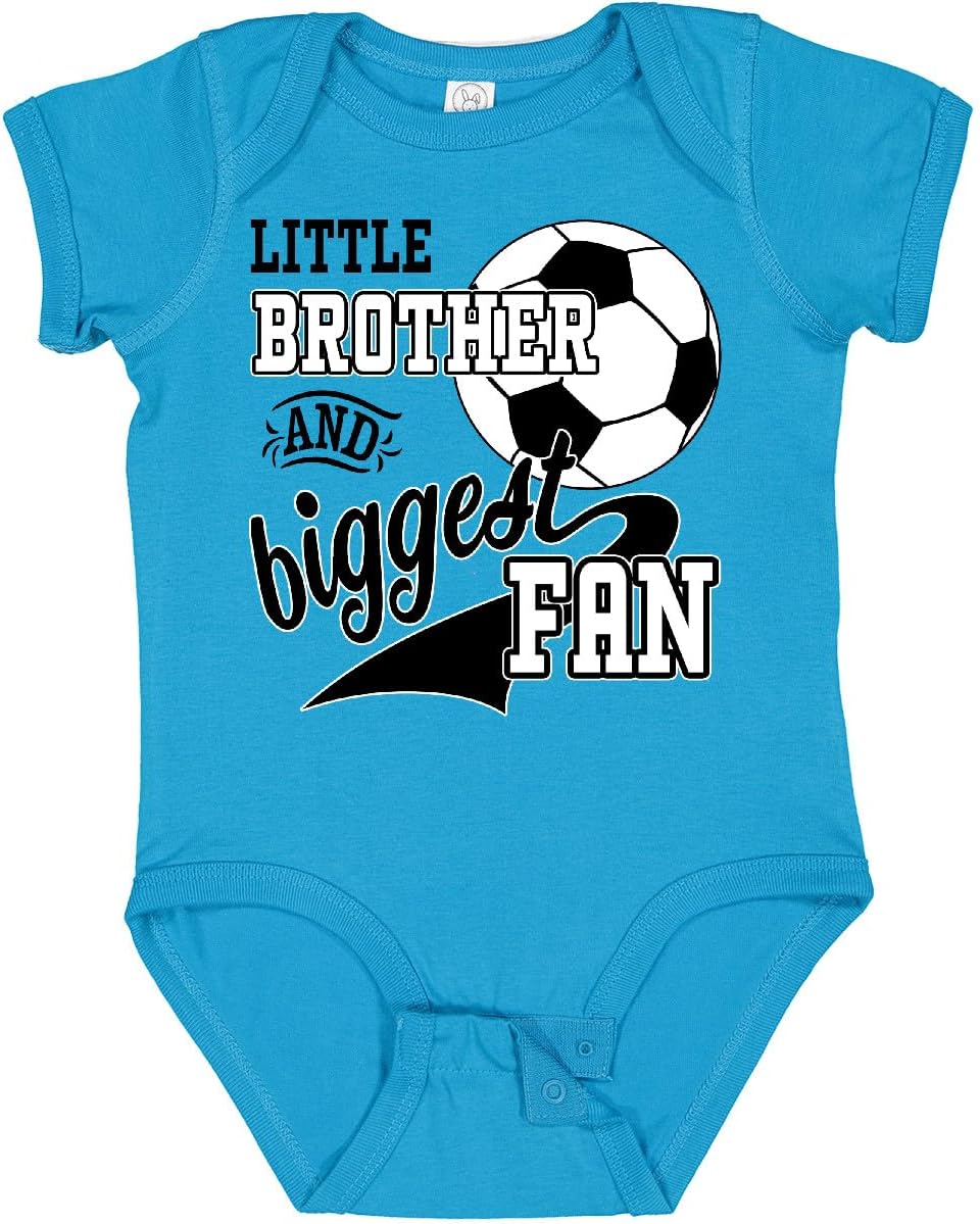 Who shows up to every game and cheers you on, encourages you, and keeps you motivated? Little Brother and Biggest Fan- soccer player Baby Bodysuit, perfect for the family and fans of soccer players.