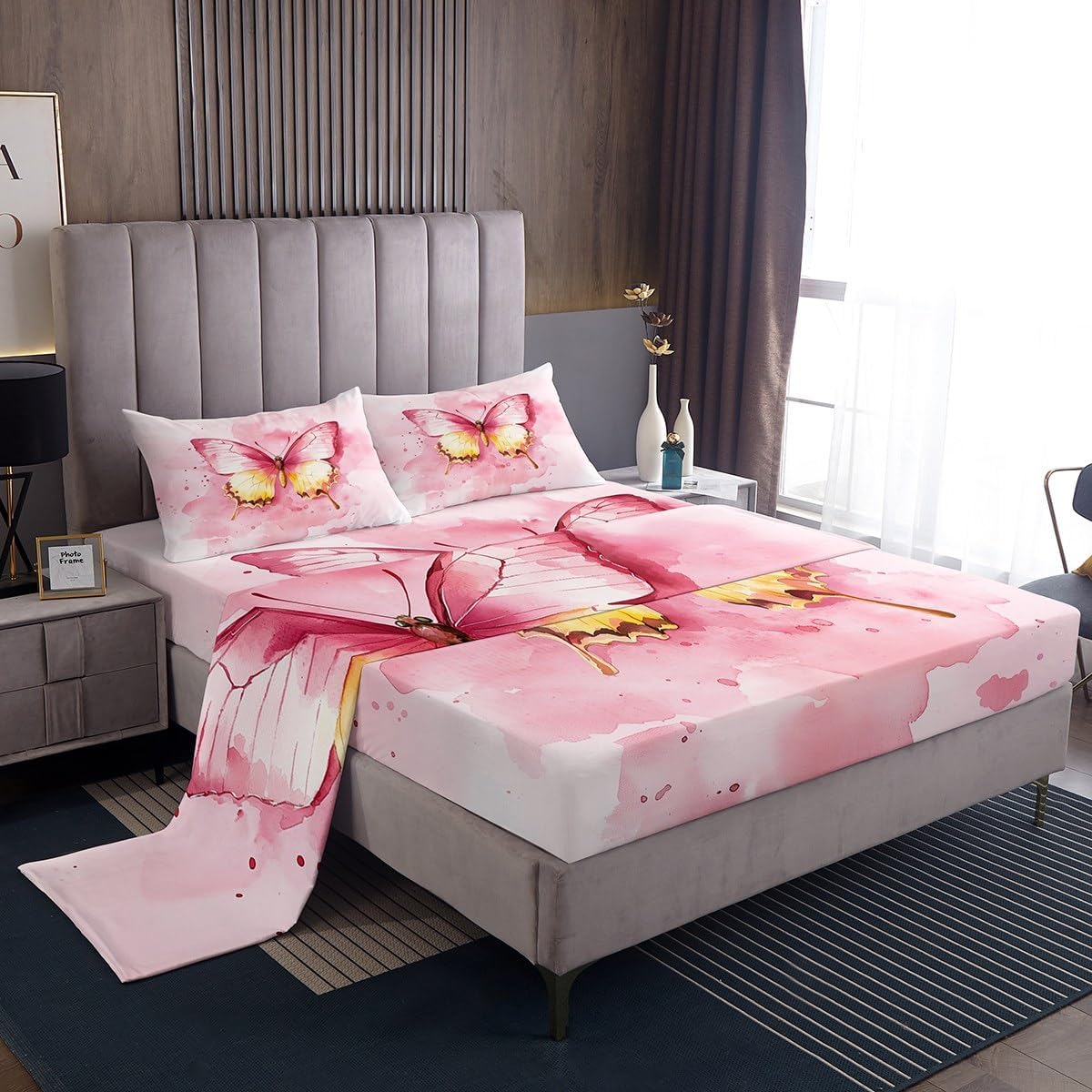 Our bed sheet is made of polyester fabric, lightweight and soft; stylish design is very suitable as room decoration for boys and girls; keep warm in winter and cool in summer; create a comfortable sleeping environment to make you fall asleep all night Range of size 1 twin fitted sheet 39 inch x 75 inch x 16 inch and 1 twin flat sheet 66 inch x 96 inch and 1 standard pillowcase 20 inch x 30 inch 1 full fitted sheet 54 inch x 75 inch x 16 inch and 1 full flat sheet 81 inch x 96 inch and 2 standard pillowcase 20 inch x 30 inch 1 queen fitted sheet 60 inch x 80 inch x 16 inch and 1 queen flat sheet 90 inch x 102 inch and 2 standard pillowcase 20 inch x 30 inch 1 king fitted sheet 78 inch x 80 inch x 16 inch and 1 king flat sheet 90 inch x 106 inch and 2 standard pillowcase 20 inch x 36 inch
