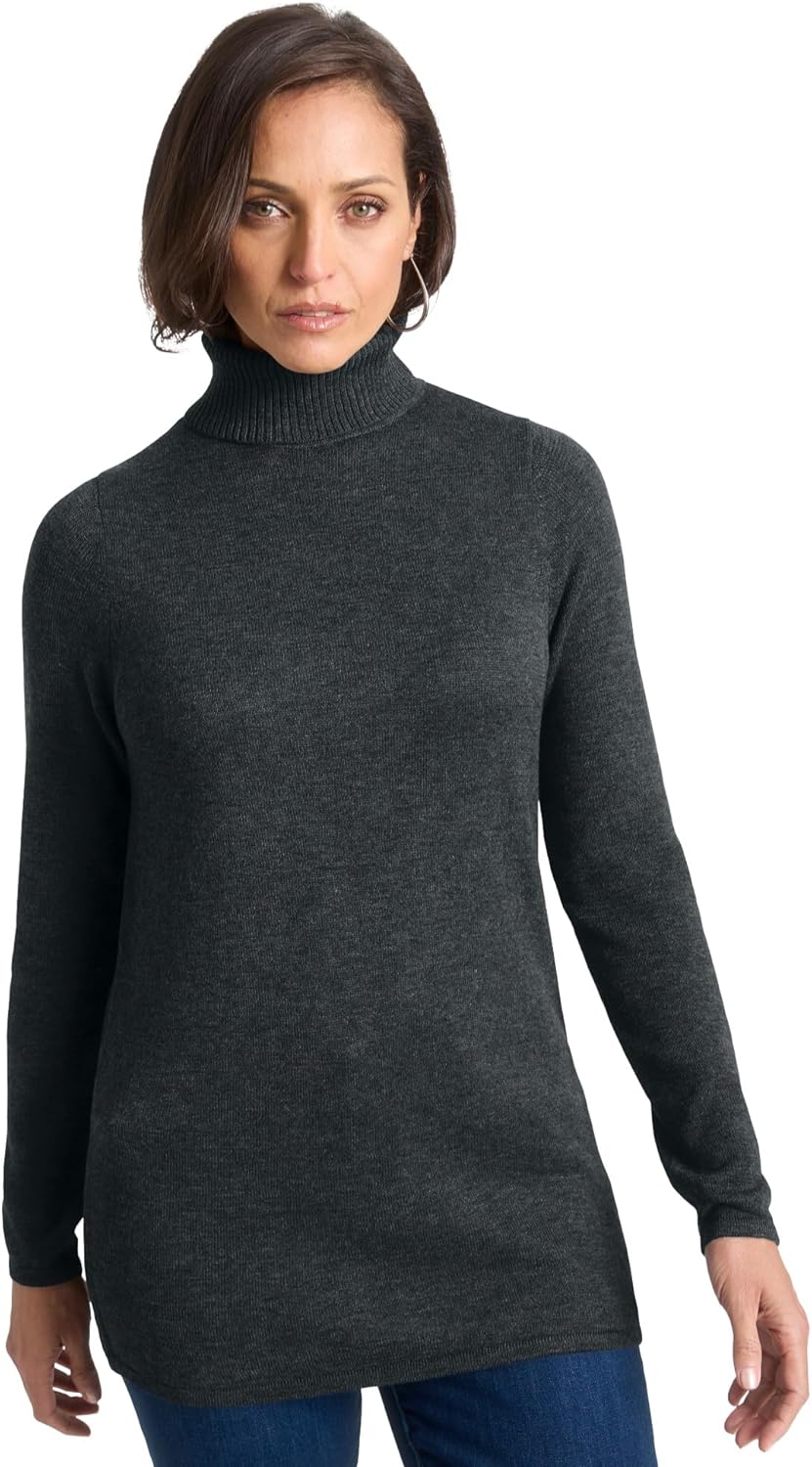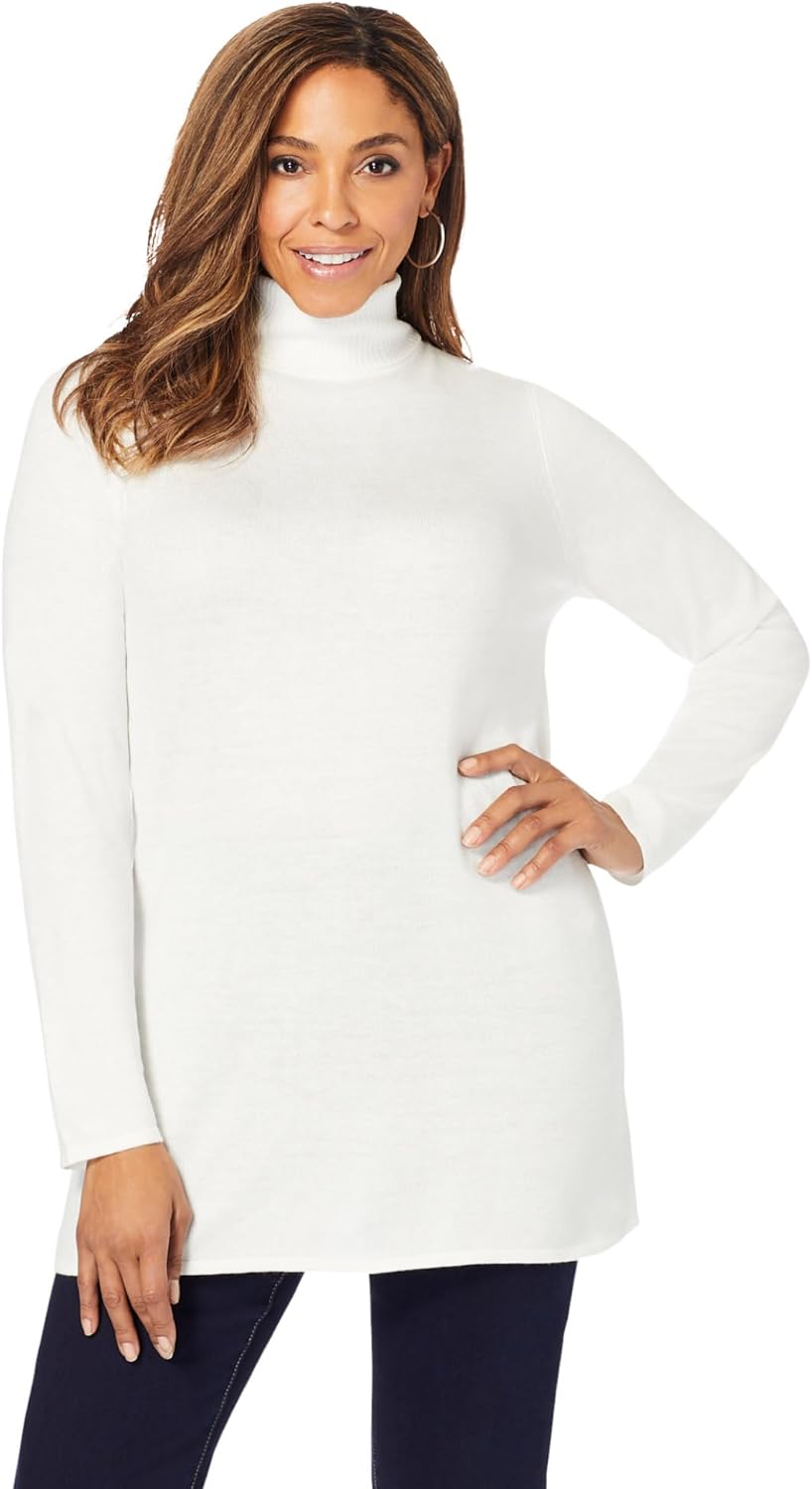 The Jessica London women's plus size Cotton Cashmere Blend Turtleneck is a timeless sweater for easy style. Features a tailored silhouette and polished tubular finish on the hem and sleeves. Pair it with jeans or a pencil skirt for a comfortable look to wear morning to night. Turtleneck br> Long sleeves br> Tubular finish on hem and sleeves br> 30" length br> Polyester/acrylic/nylon/cashmere br> Machine washable br> Imported