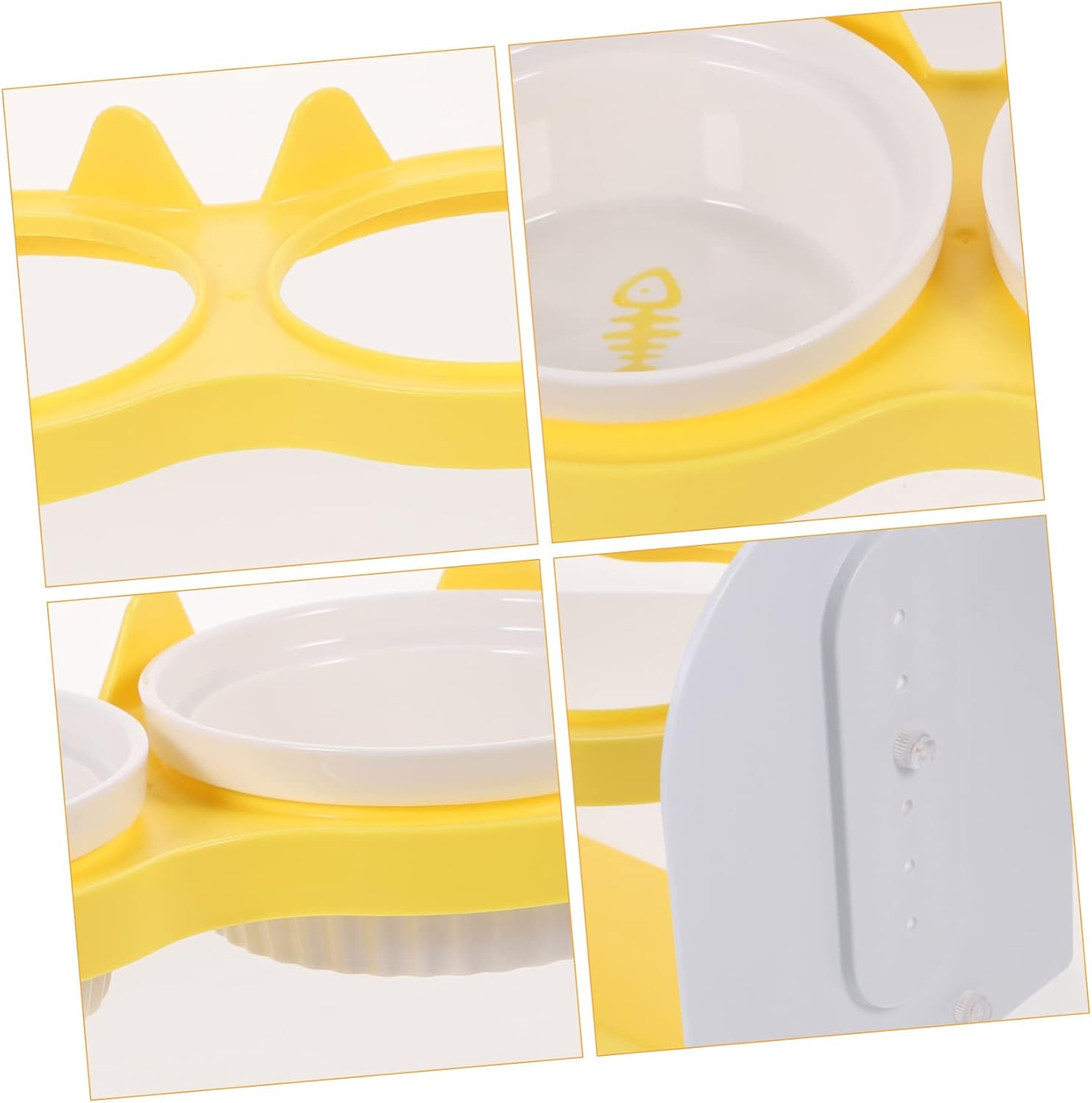 Package List 2 x Bowls 1 x Bowls Holder Characteristics - Color: Yellow(rack), white(bowl) cat water bowl - Size: 33.00X16.00X19.00cm/12.97X6.29X7.47in ceramic dog bowl -Material:Ceramic pet bowl with rack -This feeder can come true the food feeding and water feeding at the same time, and the helps protect the pet's neck health ceramic cat bowls. -The material of this pet double-use feeder makes it , -resistant, and safe for your pet cat food bowl. -Simple to use, and detachable design make it convenient for you to use and clean kitten bowl with stand. -This pet feeder is suitable for cats, dogs, rabbits, and other pets lovely dog bowl. -The water bowl is big enough, you can pour enough water into it, and a day of concerns about the shortage of water reusable feeding bowl.Goods Informationcat bowl This Pet Bowl won't be knocked over by your pets, convenient non-slip bowl for secure seating.ceramic cat bowls Safe, wear resistant, thickened design, good bite resistance.pet bowl with rack Use it as a food or water container each time, and you can save up space in your room.feeding bowl Smooth surface, rounded edge design, easy to clean,