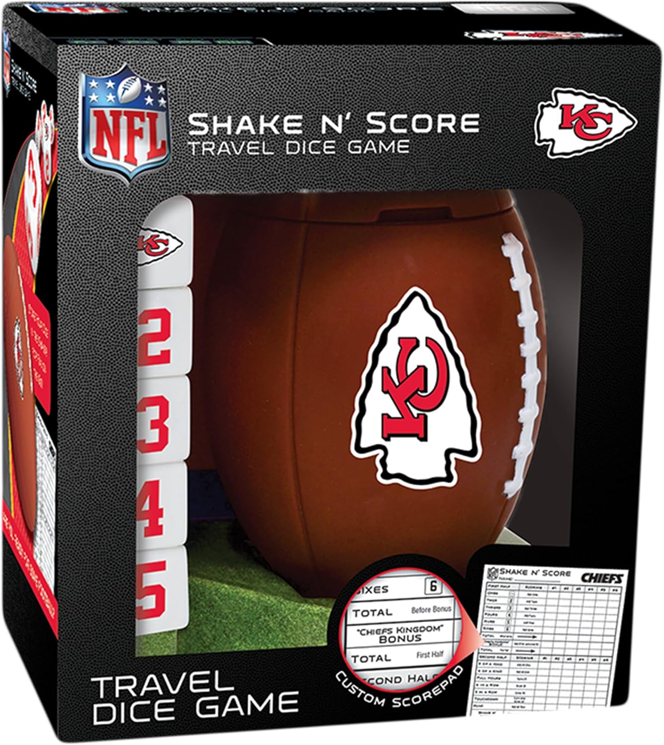 This MasterPieces Shake n' Score Dice Game is a collectible travel dice game for fans! It is perfect for having fun at home with the family! Try to get as many points as possible by rolling different combinations of all five dice! The Shake n' Score Dice Game includes a dice cup, 5 dice, and a personalized scorepad! Two or more fans, ages 6+, can play this travel dice game!