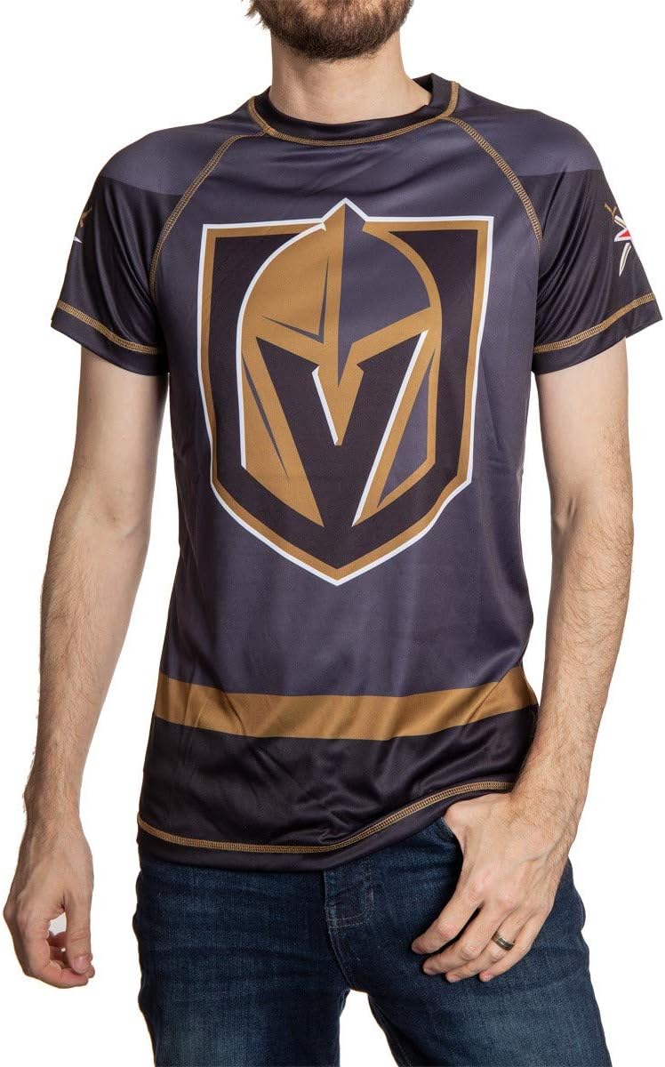 Show your team spirit off the ice! This short-sleeve performance rash guard is designed to wick moisture and keep you cool while playing sports, and is comfy for everyday wear. Made from polyester, your team logo appears in sublimated print. Officially licensed NHL Merchandise!