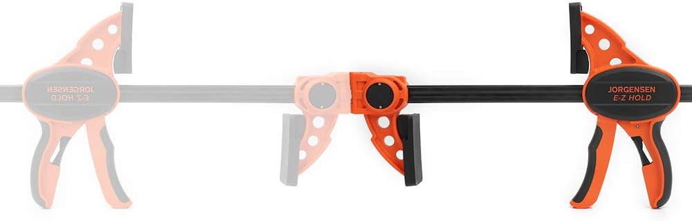 Product Description 18-Inch Jorgensen Bar Clamp. The first bar clamp to expand by joining two clamps together with no tools or added accessories needed. The patented head design allows any two Jorgensen ISD-3 Bar Clamps to be joined together for greater clamping capacity. By quickly flipping the head 900 you join two clamps together and also increase total clamping capacity by 6-Inch over the original two clamps. Example: Two 12-Inch Bar Clamps joined together will give you one clamp with an 30-Inch capacity. With every two clamps you buy, it's like getting a third, larger clamp for free. Features also include 76% More Clamping force than our competition, new quick release knob for fast, easy changeovers, and dual durometer handles for a comfortable grip. The Jorgensen ISD-3 Bar Clamp head can also be reversed for spreader function. From the Manufacturer 18-Inch Jorgensen ISD-3 Bar Clamp. The first bar clamp to expand by joining two clamps together with no tools or added accessories needed. The patented head design allows any two Jorgensen ISD-3 Bar Clamps to be joined together for greater clamping capacity. By quickly flipping the head 900 you join two clamps together and also increase total clamping capacity by 6-Inch over the original two clamps. Example: Two 12-Inch Bar Clamps joined together will give you one clamp with an 30-Inch capacity. With every two clamps you buy, it's like getting a third, larger clamp for free. Features also include 76% More Clamping force than our competition, new quick release knob for fast, easy changeovers, and dual durometer handles for a comfortable grip. The Jorgensen ISD-3 Bar Clamp head can also be reversed for spreader function.