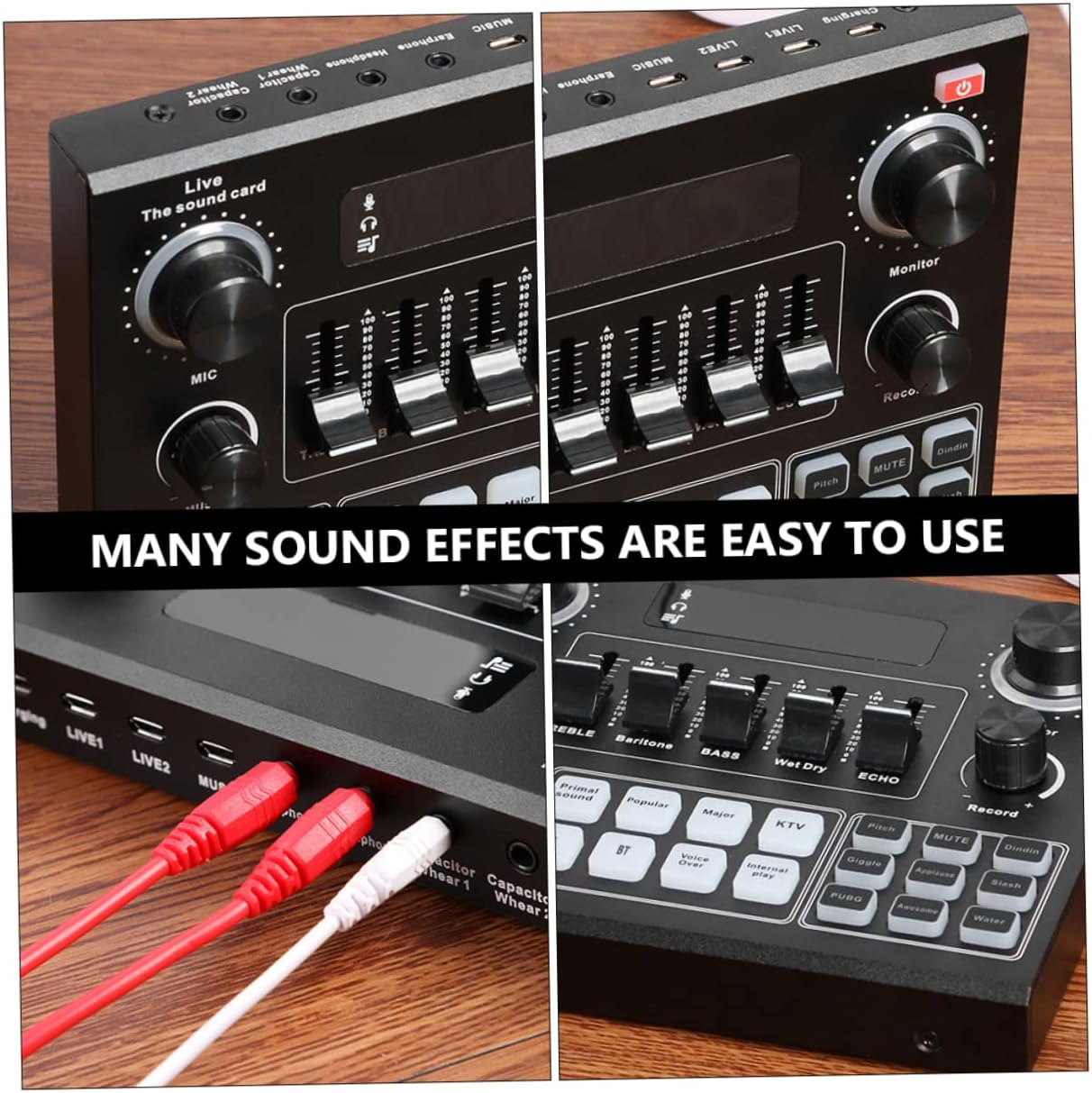 Package List 1 x data cable 2 x connection cables 1 x sound Features -Material: ABS Audio Card -Size: 21.20X11.50X3.80cm/8.33X4.52X1.49in Sound Changer -Color: Black Portable Voice Changer - Built-in many sound effects are easy touse Computer Voice Changing Tool - Support dual mobile phones or one mobilephone and one computer at the same time Voice Changer - materials are strong anddurable Phone Sound Card - Wide range of uses, fit for mobile phone,computer and handset Computer Sound Card. - The 1200ma battery has a large capacityfor longer use SoundGoods DescriptionSound Changer It is one of the bestchoices for you.Portable Voice Changer Are you looking for a , yetaffordable live recording sound card? Are you in search of a sturdy,trustworthy tool that can do multiple jobs at once? , !Our live recording sound must meet your needs