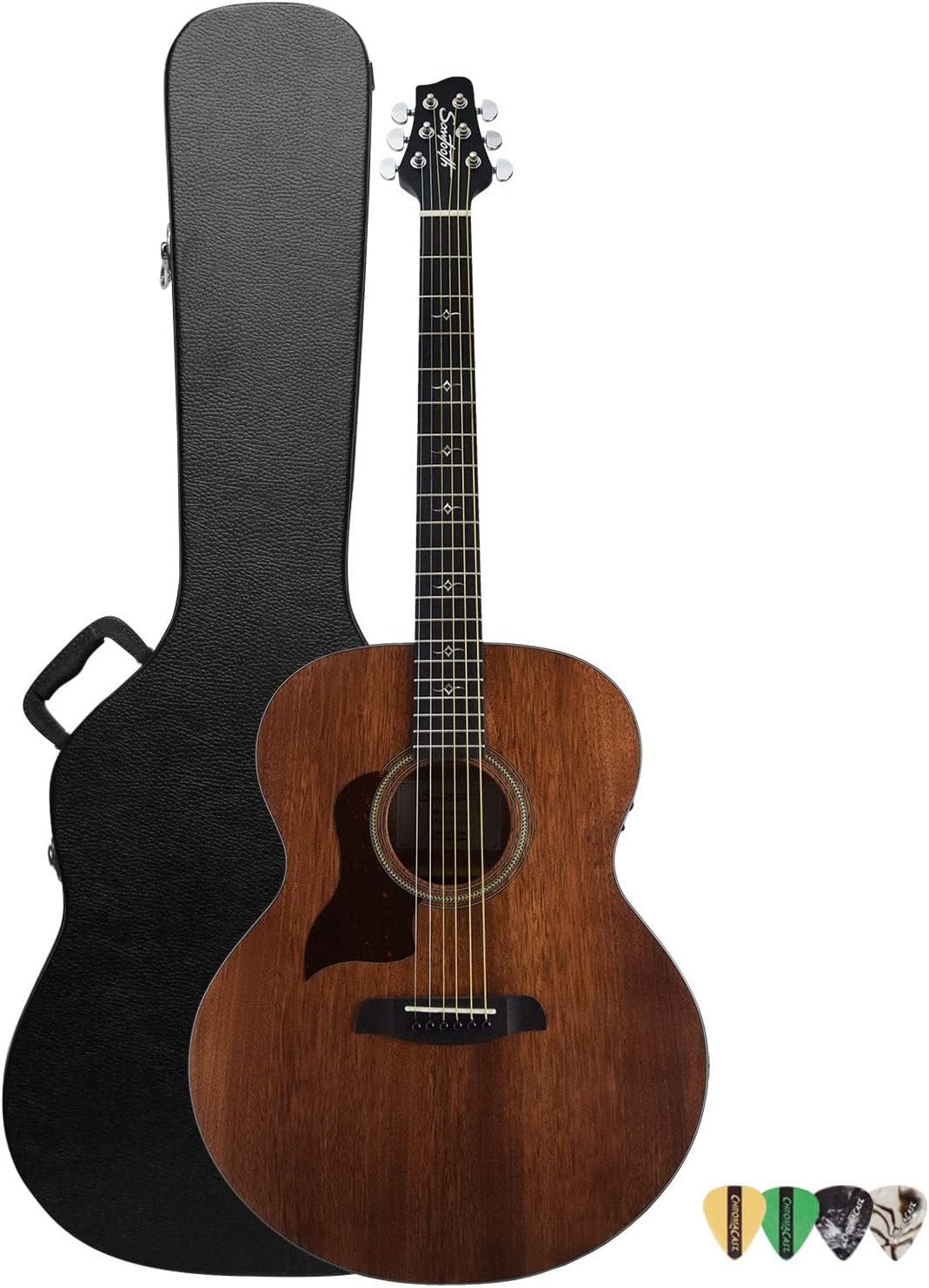 Sawtooth's Mahogany Series guitars offer rich sound and tremendous value. Built with a solid Mahogany top and mahogany back and sides, these guitars deliver a focused full mid-range sound that is warm and well balanced.