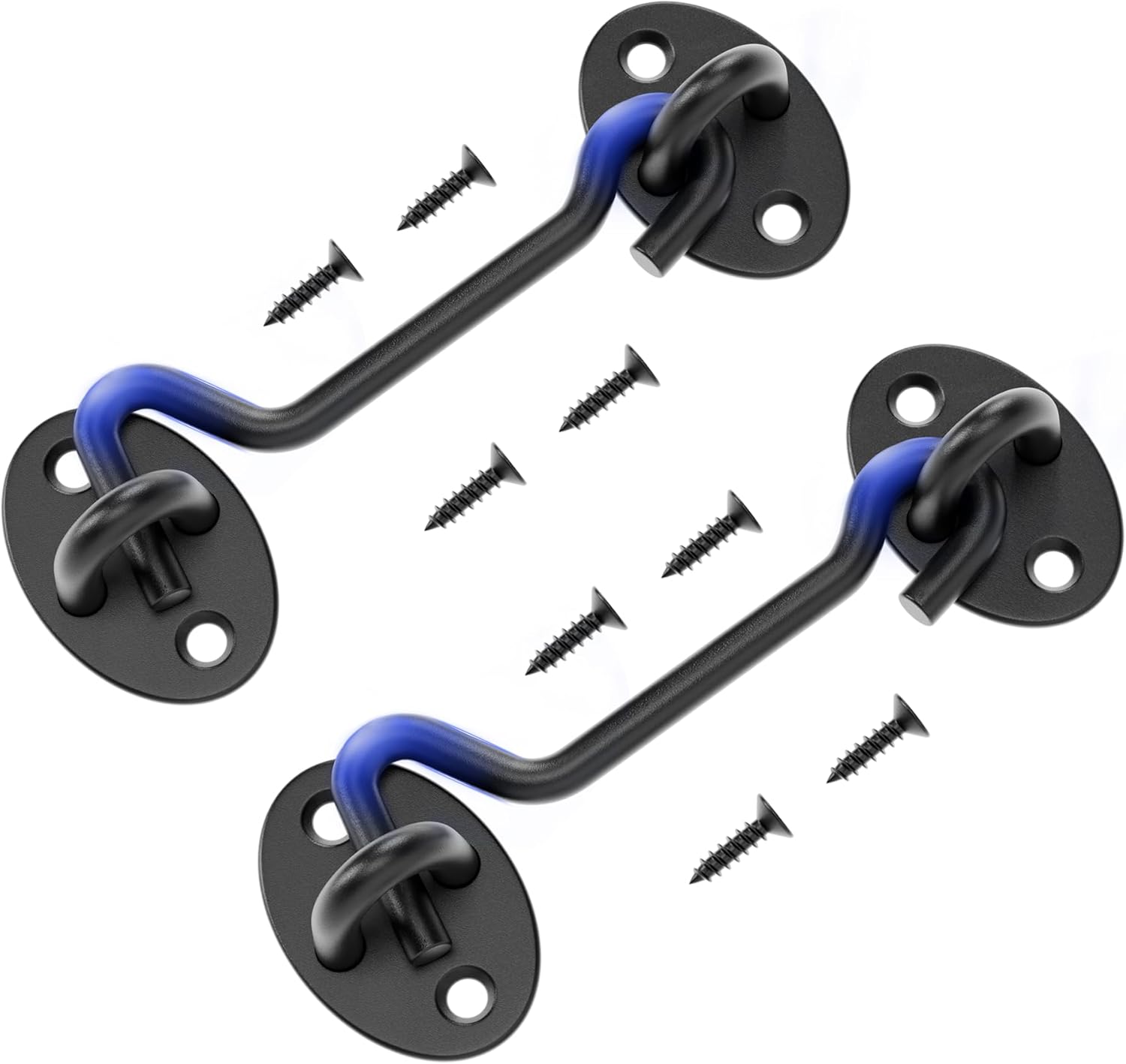 TRIPLE DEER eye hook latch features a black matte finish for wear and rust resistance. Its unique curved hook design allows 90°-180° multi-angle installation, compatible with doors, windows, and specialty applications (e.g., cabinets, barn doors, garages). The chain restrictor prevents accidental openings for enhanced security and privacy, while countersunk screws ensure sleek installation. Smooth operation delivers everyday convenience.