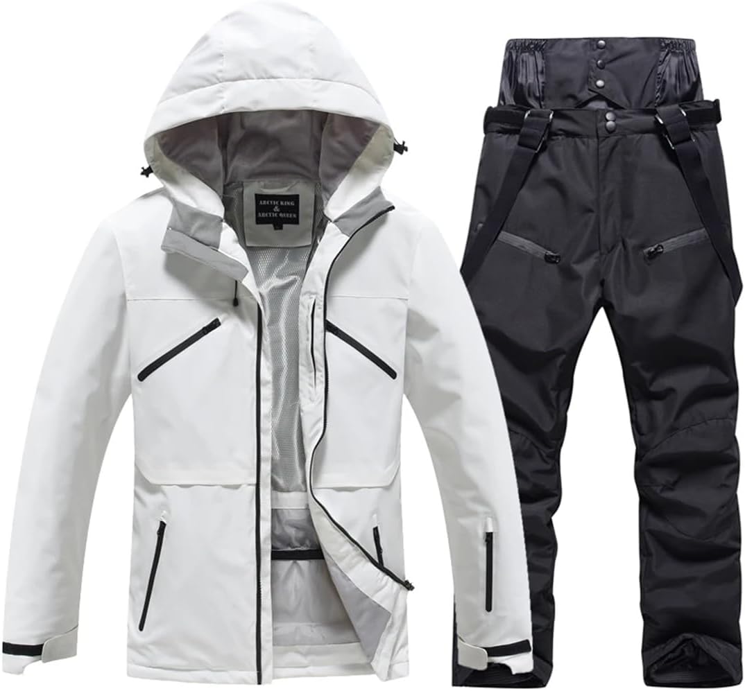 The ski suit is made of technical fabrics, and the surface of the clothes is suitable for grade 4 waterproof treatment. It can reduce the absorption of water by the fabric, so that water droplets can be easily thrown off. There is a transparent PU film under the fabric. This membrane can also help fabrics reduce moisture penetrationDesign:Detachable hat,the cuff velcro and the hem wind skirt's design,which could keep warm and protect you from the wind(cold) when you are going any outdoors'activties,such as,skiiing,snowboard,hiking,etc.Besides,there are large inside pocket and inside pocket with earphone hole in it,which you could place your earphone and your smartphonePleasing temperature:You could notice there are hem windproof skirt buckle and the detachable hat,which bring you a comfortable temperature and you won't feel too cold or too hotBreathable and Quick-Drying:Breather mesh zipper design,you can always keep cozy and dry during exerciseJacket1) Smooth & Durable YKK Zipper closure2) Detachable and adjustable hooded, keep your head warm3) Adjustable cuffs, stretchable glove with thumb hole4) Inside windproof snap powder skirt, internal drawcord hem5) Mesh pocket and Zipper pocket to put your phone, or your small accessoriesPants1) Adjustable waist , allows the pant to fit comfortably2) Side pockets and back pockets to hold your accessories3) Windproof bottom and the elastic trouser legs, effectively prevent wind and snowSize notes: smaller than standard, choose 1-2 bigger size. Please refer to our size chart and choose the appropriate size before ordering