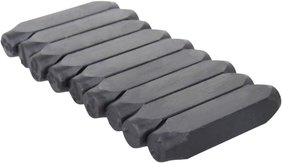Utoolmart Number Metal Stamp Set, Number Stamp Punch SetFeatures* Suitable for mold, metal products, jewelry and other digital signs.* High-quality 45 steel, high-frequency heat treatment of high hardness.* Widely use in a variety of machine tool stamping, hydraulic, hydraulic, and hand-hammer pressure.* Every stamp is precisely machined to ensure all stamps are of the same size. In addition, all stamps are manufactured to be clear and legible upon use.* The hardness is high, and the service life is long, both labor saving and clear words can be made.Technical Parameters* Product Name: Number Metal Stamp Set* Material: 45# Steel* Box Material: ABS* Printed Symbol Size: 8mm / 0.31-inch* Surface Treatment: Blackening* Color: BlackPackage Content* 2 x Number Metal Stamp Set