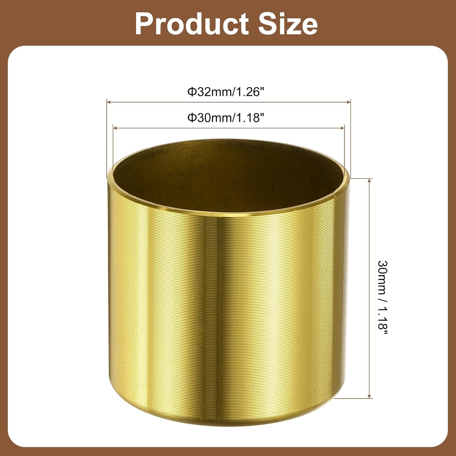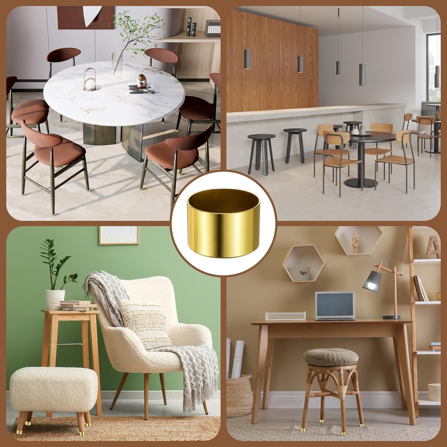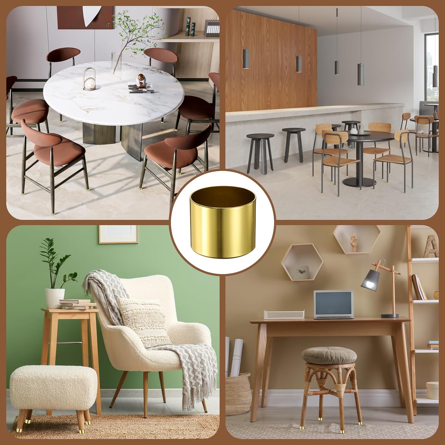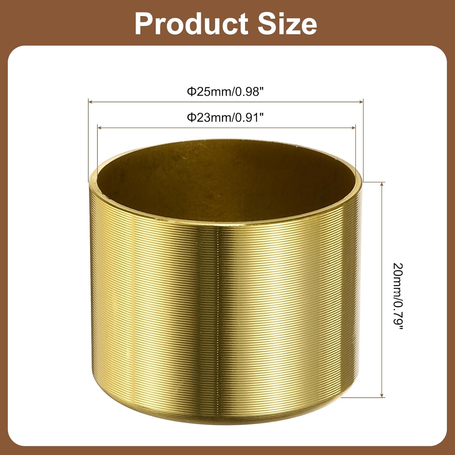 Description:Good Material: These mini table foot cover caps are made of sturdy aluminum alloy with an oxidized surface, making them corrosion-resistant, wear-resistant, and colorfast, ensuring durability, sturdiness, and a long service life.Aesthetics & Protection: These metal furniture leg caps feature a smooth gold finish, adding a touch of sophistication to any piece of furniture and elevating the style of your home or office space. Furthermore, they effectively protect furniture legs, prevent floor scratches, cushion furniture movement, reduce noise from friction between furniture and the floor, and enhance stability.Easy to Use: Our table and chair foot caps are straightforward to install. Align the metal foot covers with the bottom of the furniture legs and gently push them down until they completely cover the bottom of the furniture legs.Wide Application: Our chair foot covers are suitable for a wide variety of furniture, including sofas, cabinets, wardrobes, shoe cabinets, bookcases, tables (coffee tables, desks, workbenches, dressing tables, bedside tables, bathroom cabinets, etc.) and chairs.Specification:Material: Aluminum AlloyColor: YellowOuter Diameter: 24mm/0.94inchInner Diameter: 22mm/0.87inchHeight: 23mm/0.91inchPackage Content: 6Pcs x Metal Furniture Feet Cover