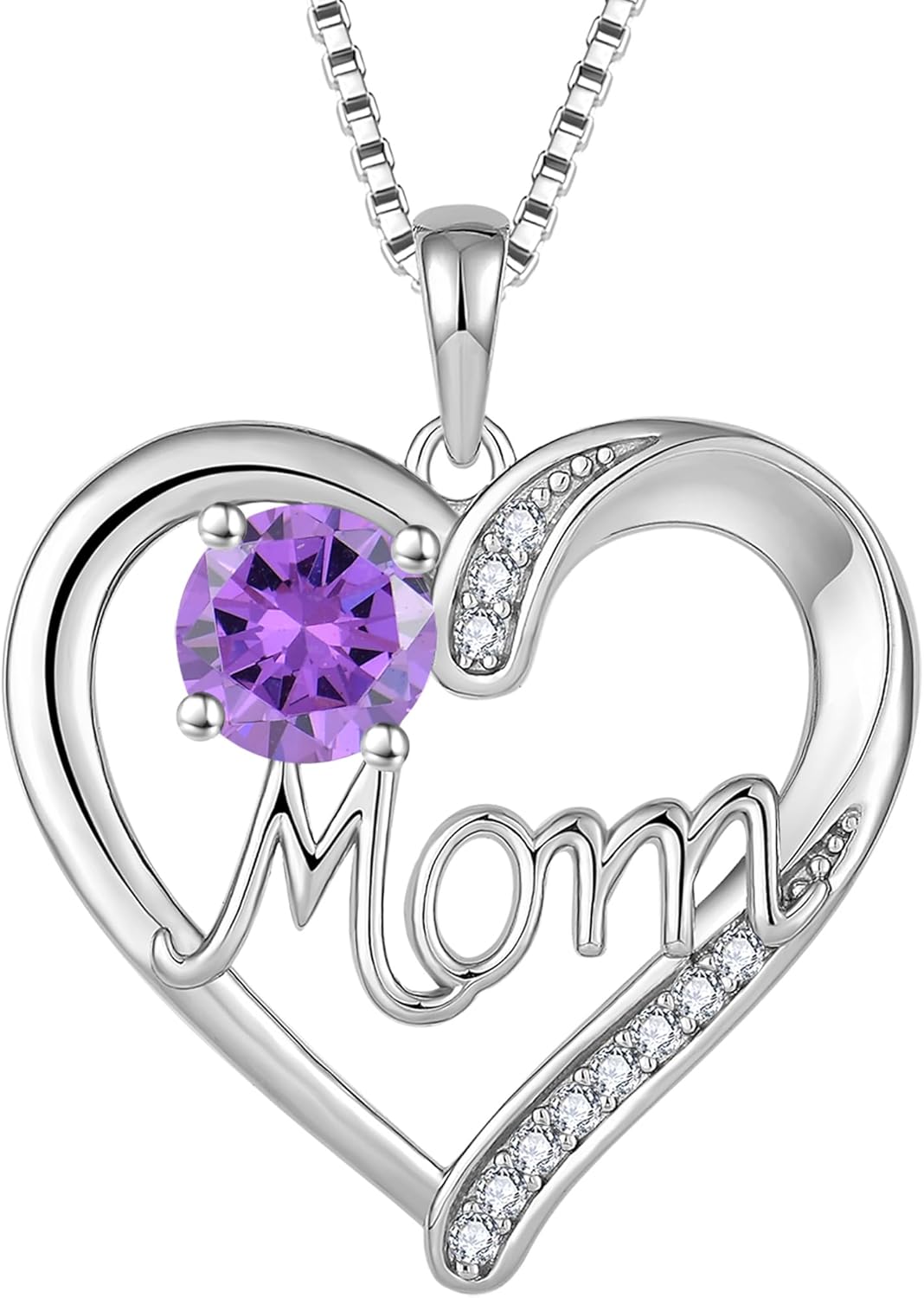YL 925 Sterling Silver Heart Necklace for Women Love Mom Pendant Birthstone Jewelry for Mother